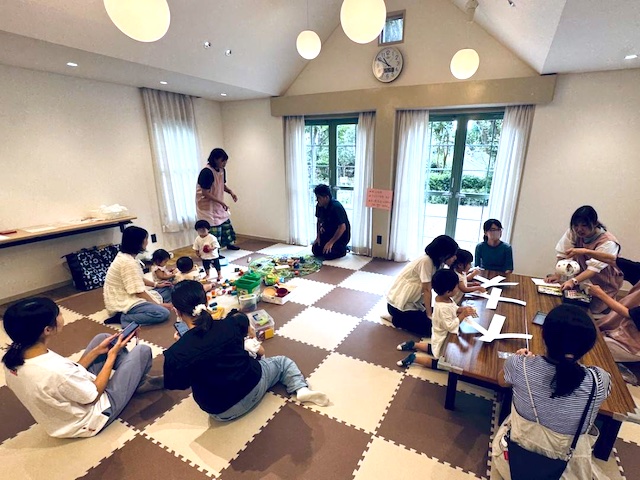集会所はひろばと一味違い、外の木々が見え開放感のある明るいお部屋でした。