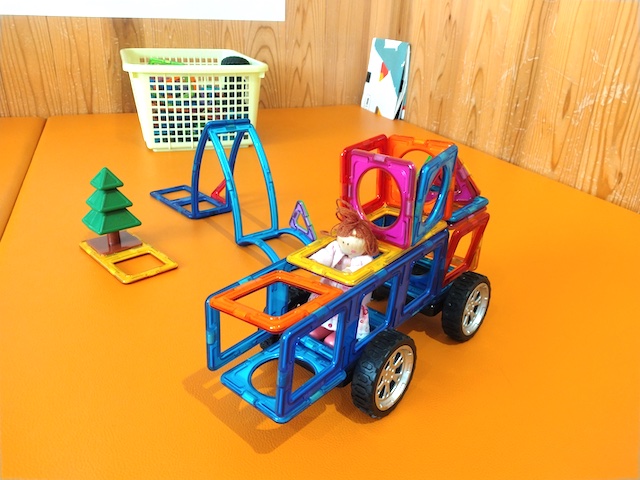 お話を聞くと、お友達の家で遊んで楽しかったマグフォーマーが広場にもあって、うれしかったんですって。