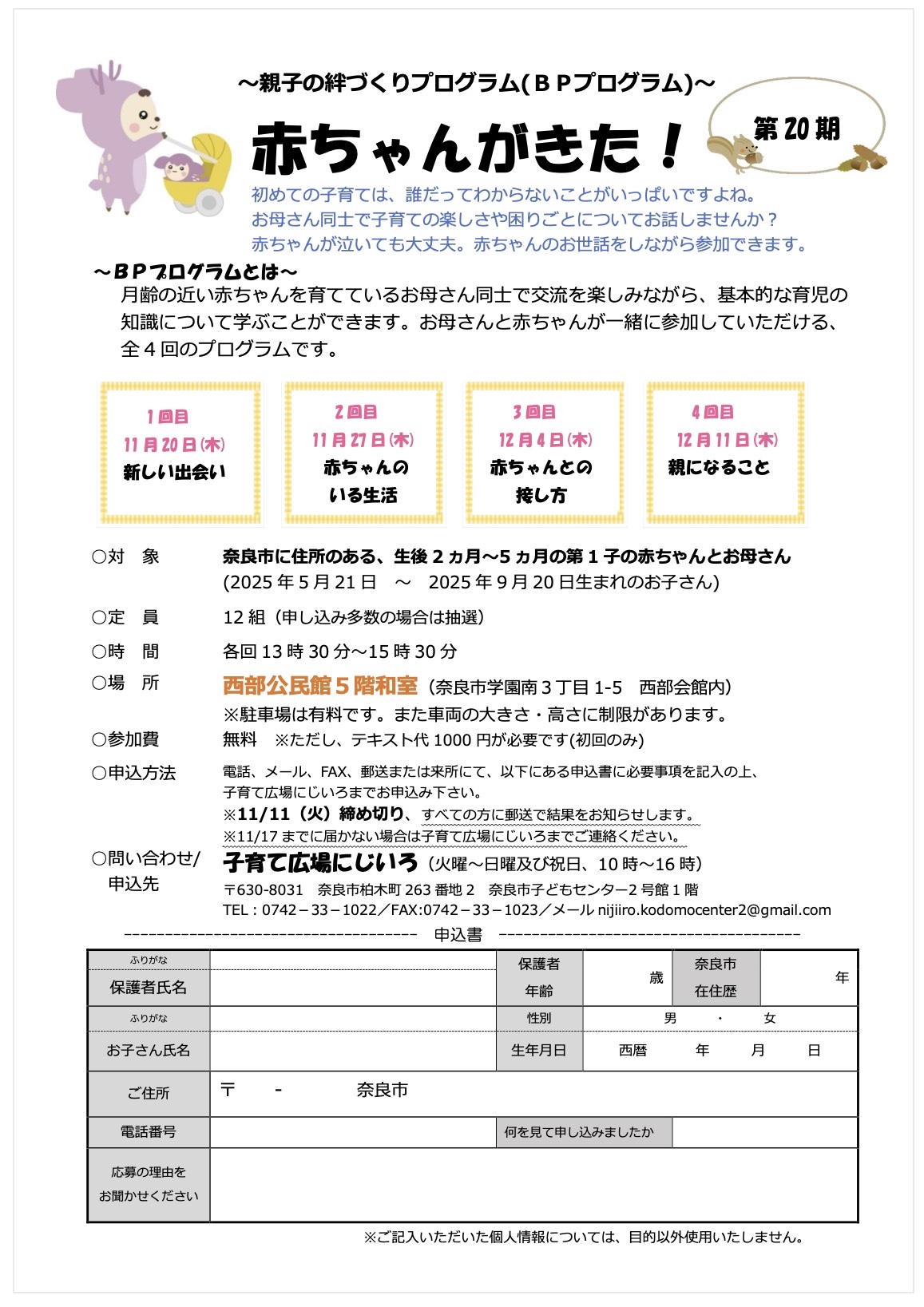にじいろ 赤ちゃんがきた!(BPプログラム)のお知らせ