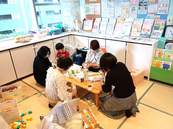 単純作業をしながら、子育て中ならではのおしゃべりに花を咲かせ、そんな周りでは、お子さんがママにくっついているときもあれば、離れた場でも伸び伸びと遊んでいる日もあれば。どんな日も、子育ておうえん隊さんの見守りが助けとなり“親子がそれぞれしたいことをしている1時間半”と、なっています。