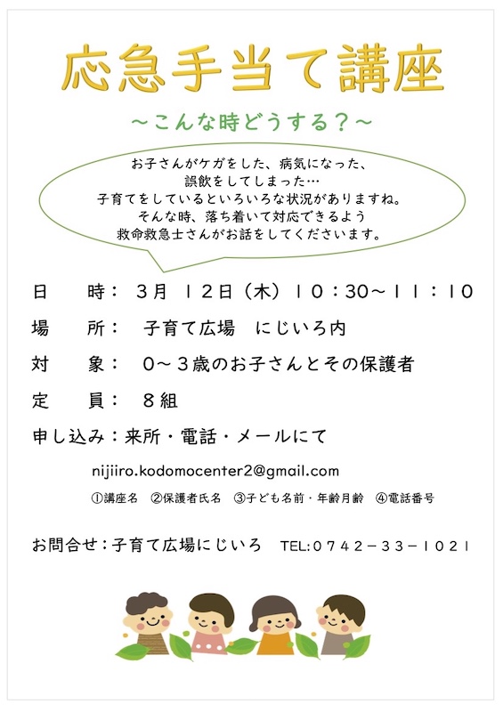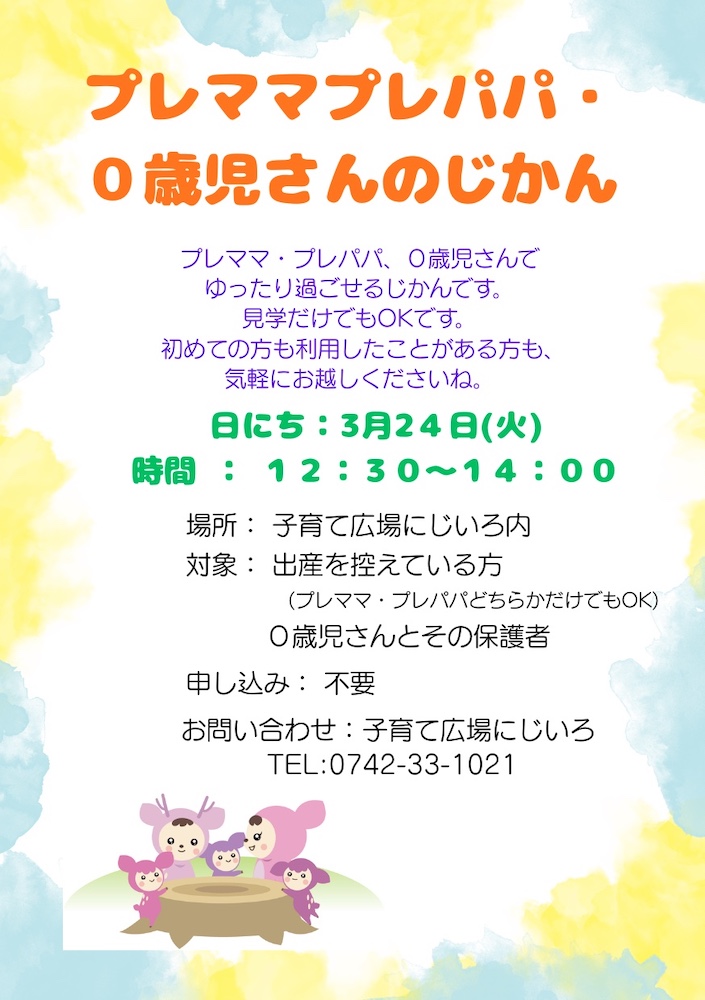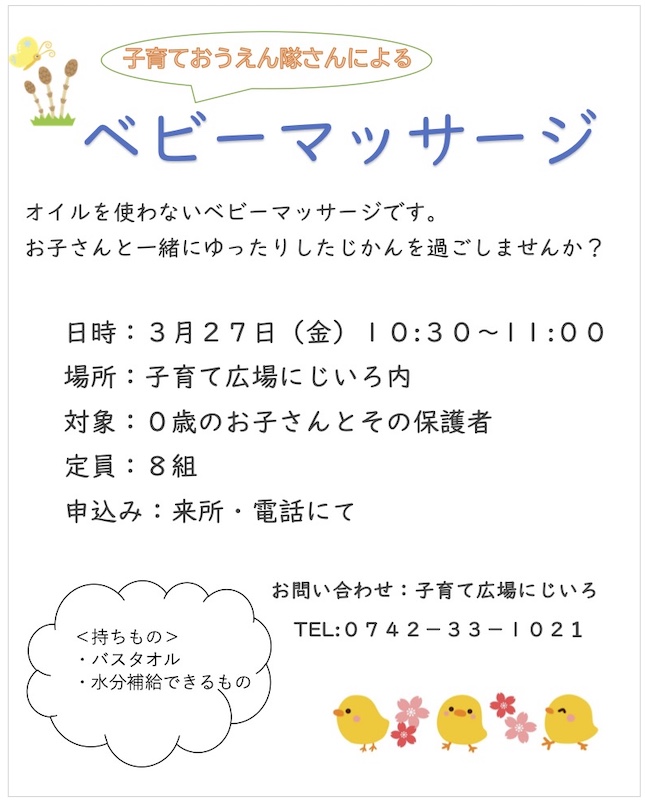 子育て広場にじいろからのお知らせです。