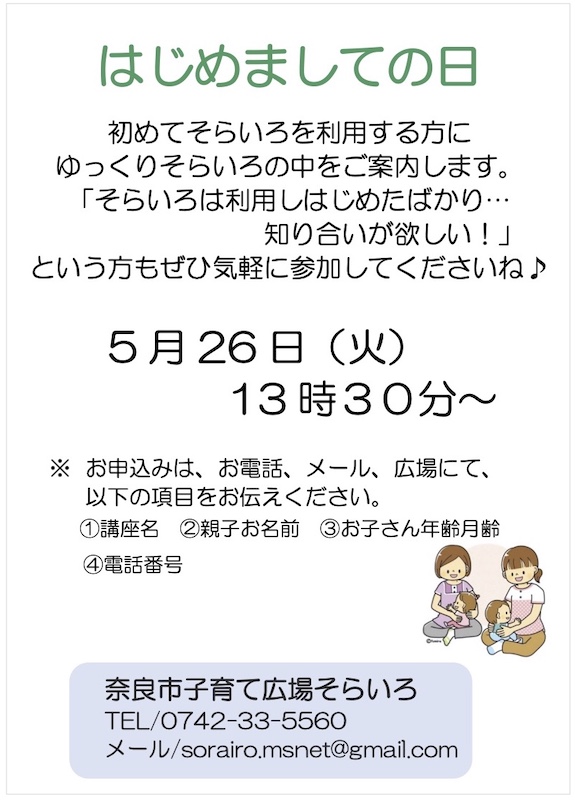 ☆プレママ・プレパパのためのひろば見学会「そらいろさんぽ」